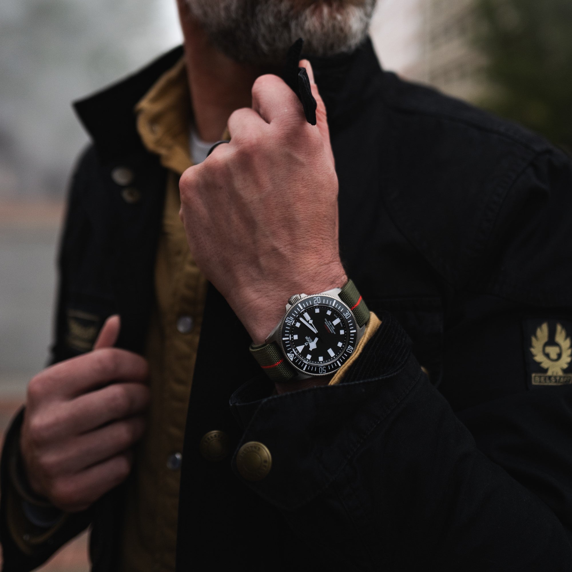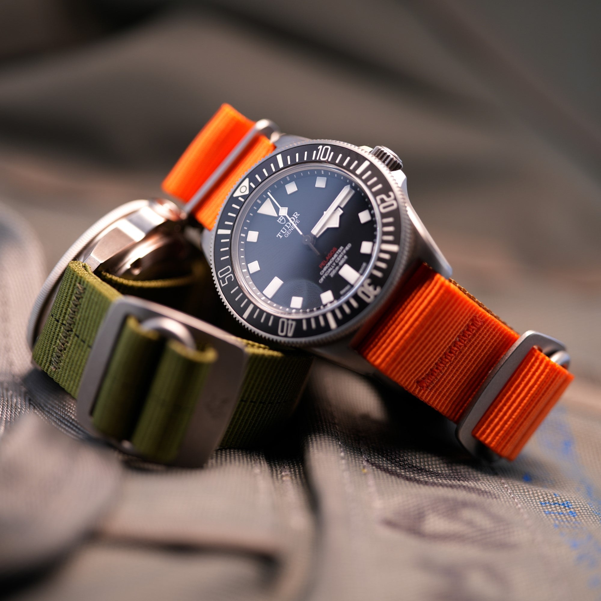 Our watch straps are crafted with a commitment to "oldschool" quality, refined to fit seamlessly with your lifestyle. By reimagining the traditional watch strap buckle—drawing inspiration from dive gear, parachute hardware, climbing harnesses and street fashion—we have developed ground breaking, custom hardware that’s as familiar in function as it is innovative in form.